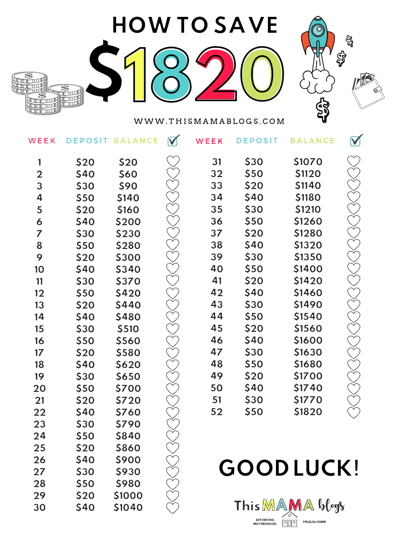 Money Saving Challenge - Save $1,820